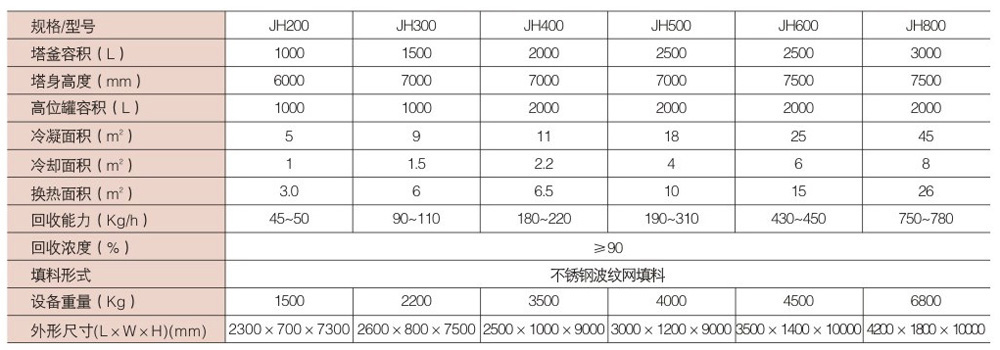 酒精回收塔有塔釜、塔身、冷凝器、冷却器、缓冲罐、高位贮罐六个部分组成,适用于食品、轻工、化工等行业的稀酒精回收,本设备与物料接触部分均采用OCr18Ni9不锈钢制造,降低生产成本。本装置可将30-50°的稀酒精蒸馏到90-93°,残液排放含醇度低。